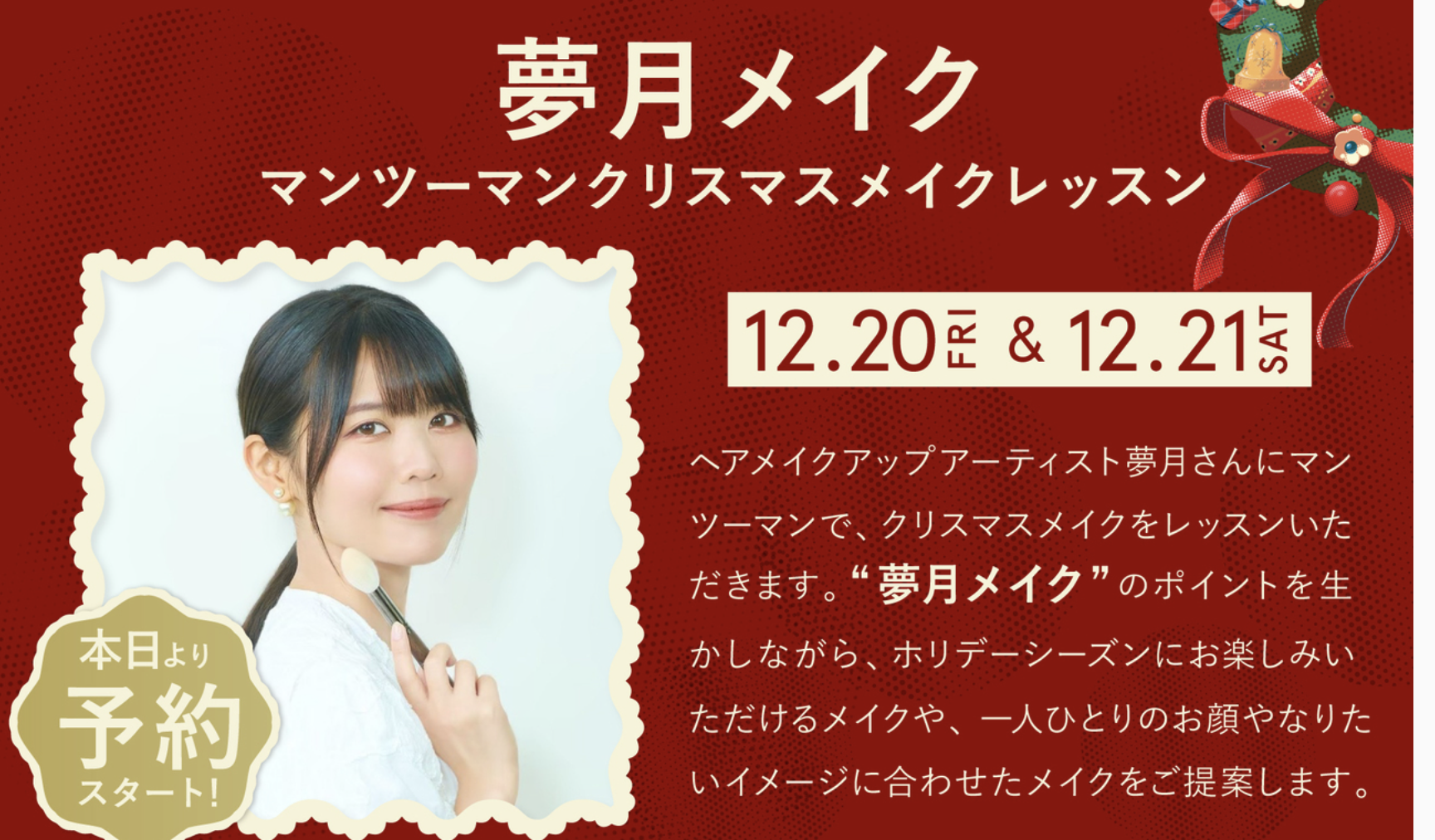 ”夢月メイク” マンツーマンクリスマスメイクレッスン