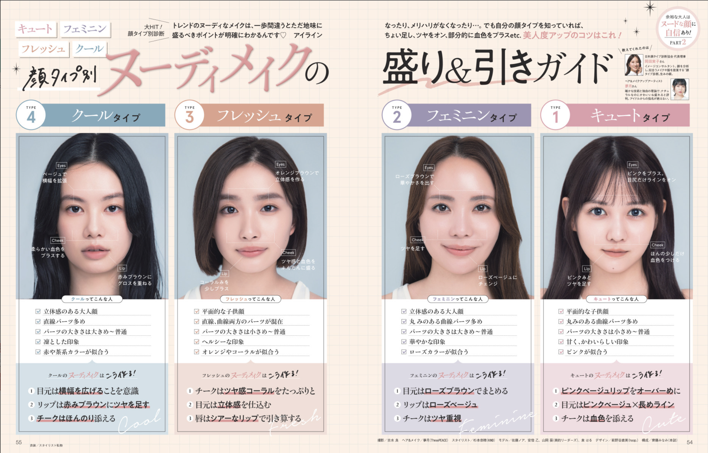 顔タイプ別ヌーディメイクの盛り&引きガイド