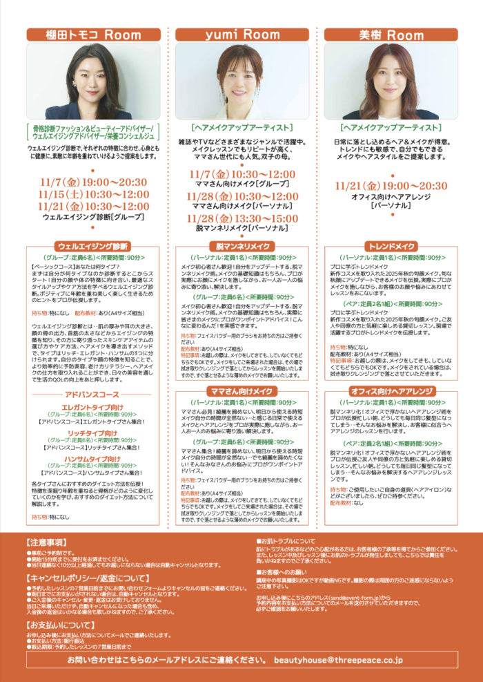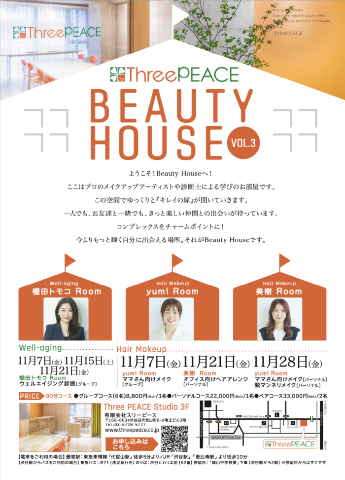 [NEW]Three PEACE Beauty House 11月のレッスンご予約受付